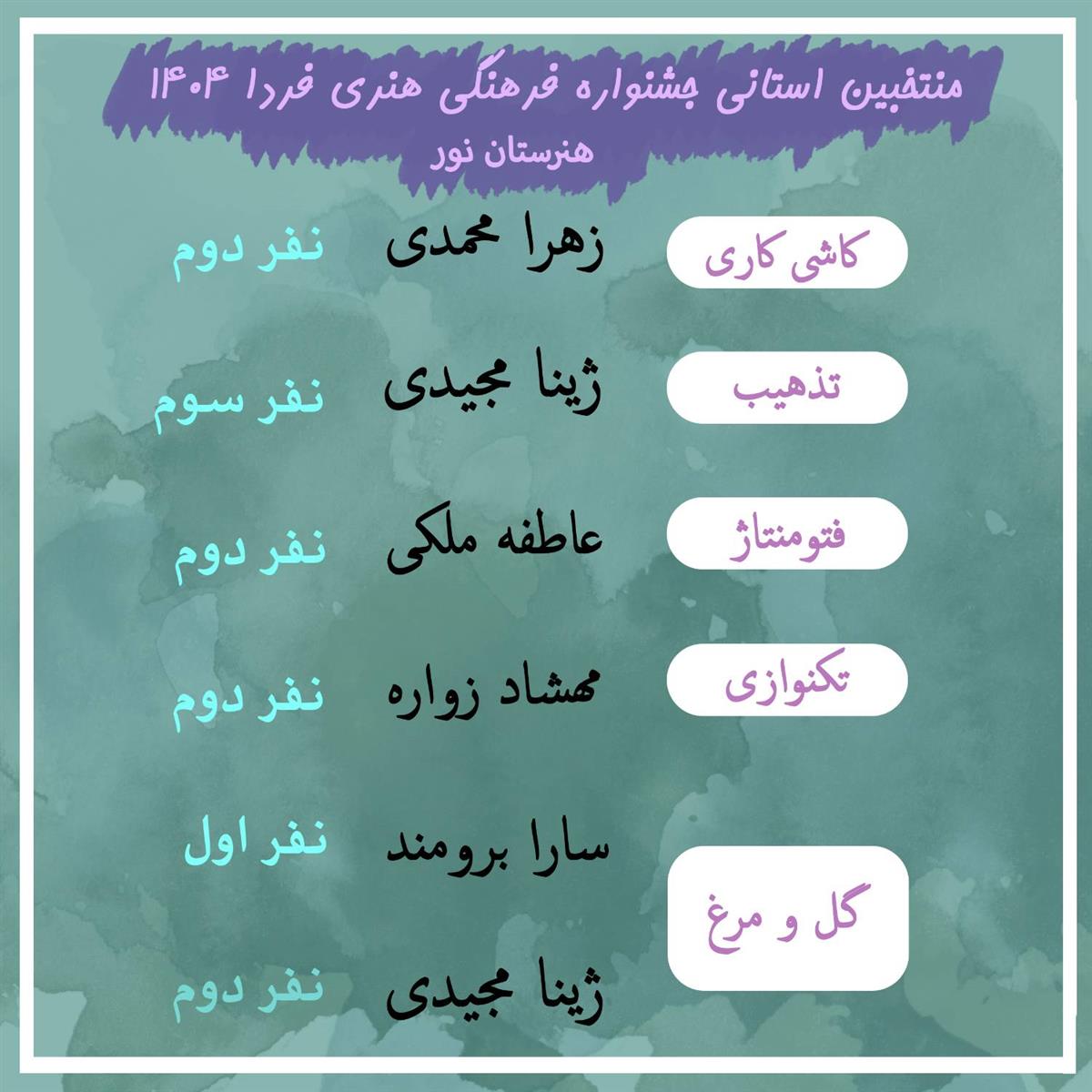 بر پایی مراسم ایام فاطمیه در هنرستان نور بار دیگر در سوگ خانم فاطمه الزهرا (س)می نشینیم واین بار با آموخته های خود در قالب آثار هنری نذر خود را ادا می کنیم . به امید قبولی نذر مان و دستگیری بانو دو عالم در مراحل زندگی مان