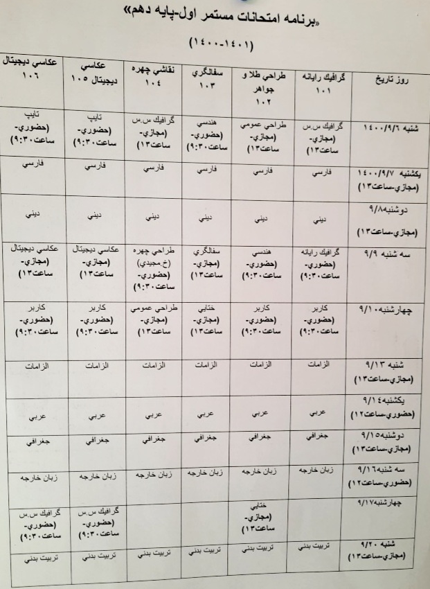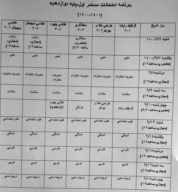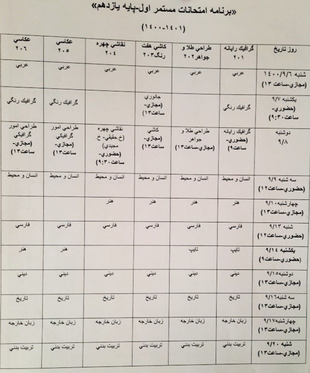 برنامه امتحانات مستمر آذر ماه ۱۴۰۰