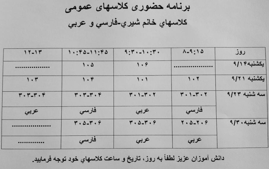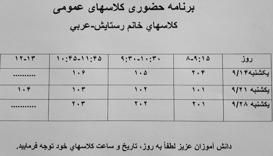 زمان کلاسهای رفع اشکال همکاران عمومی....لطفا به روز،تاریخ و ساعت حضور در کلاس دقت فرمایید.